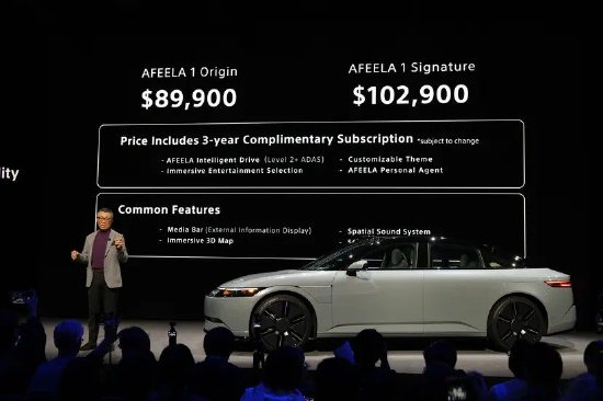 据悉,该车将提供两种款式:售价 89900 美元的 Afeela 1 Origin 和售价 102900 美元的 Afeela 1 Signature。两种价格均包含免费三年订阅,可使用各种车载功能,包括该公司的 Level 2+ 驾驶辅助系统和人工智能个人助理。(罗宁)