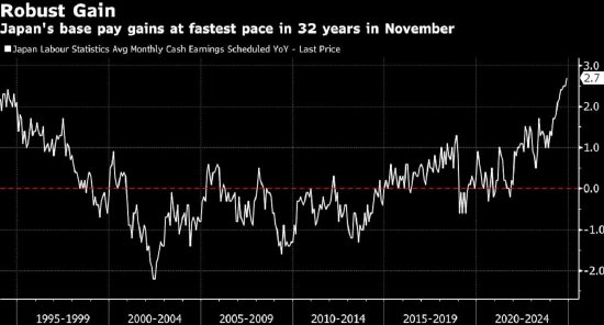 日本11月基本工资录得32年最大涨幅,支持加息预期