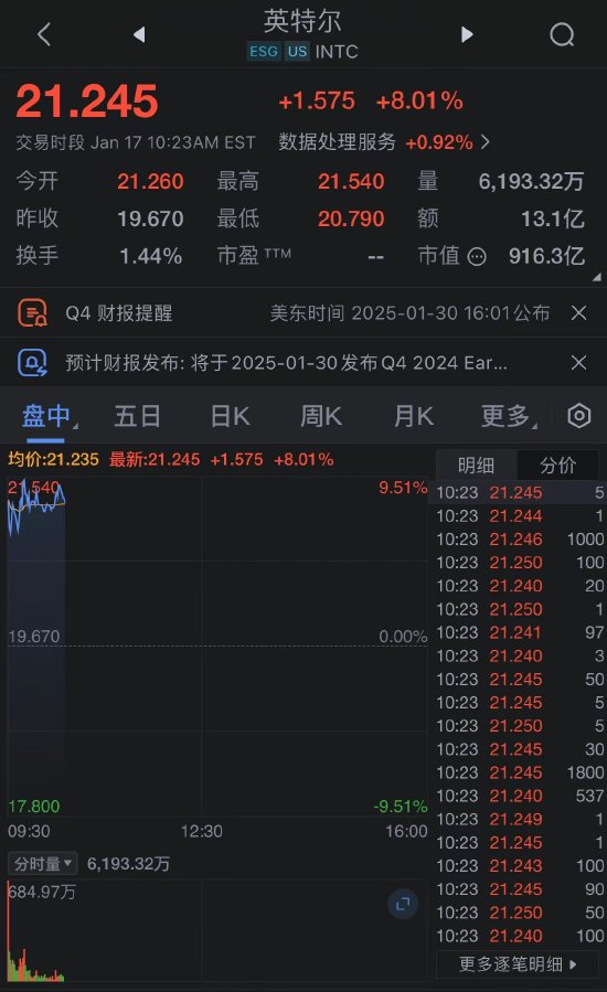 英特尔股价周五一度上涨8.4%,为11月以来最大盘中涨幅,此前一篇报道称,该公司可能成为收购目标。