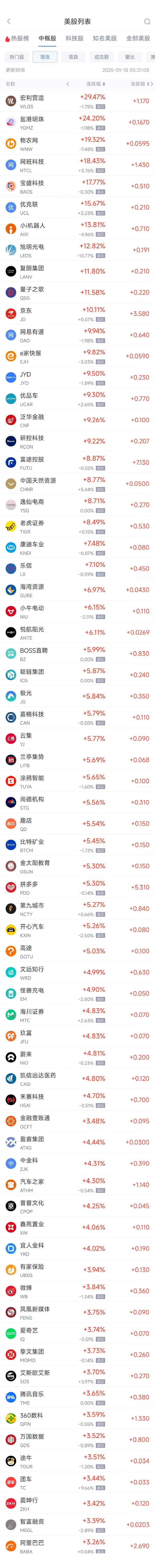 (截图来自新浪财经APP 行情-美股-中概股热门板块)下载新浪财经APP