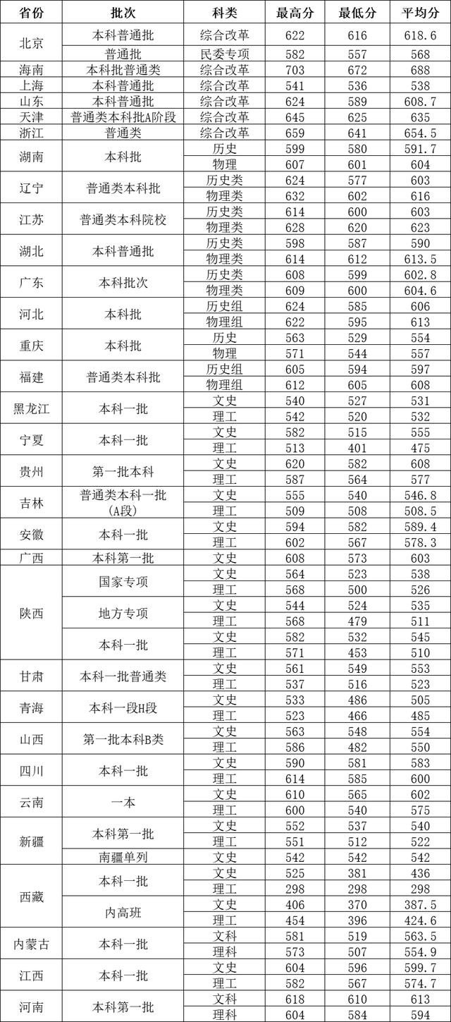历史类招生最高分624分,最低分585分,物理类招生最高分622分,最低分595分。