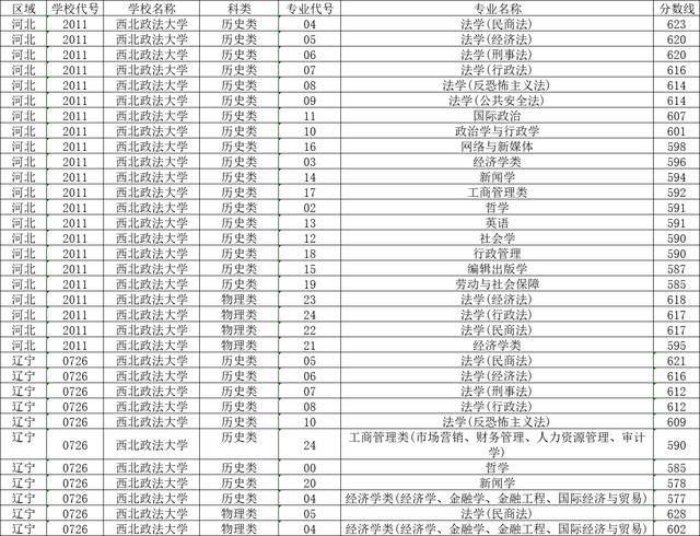 1.2023年,西北政法大学本科提前批准各省录取分数线