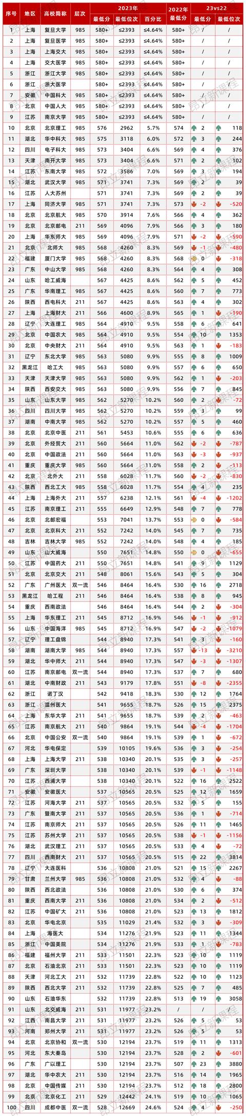 TOP100高校分数线排名!哪所学校强势攀升?哪所学校前景可观?