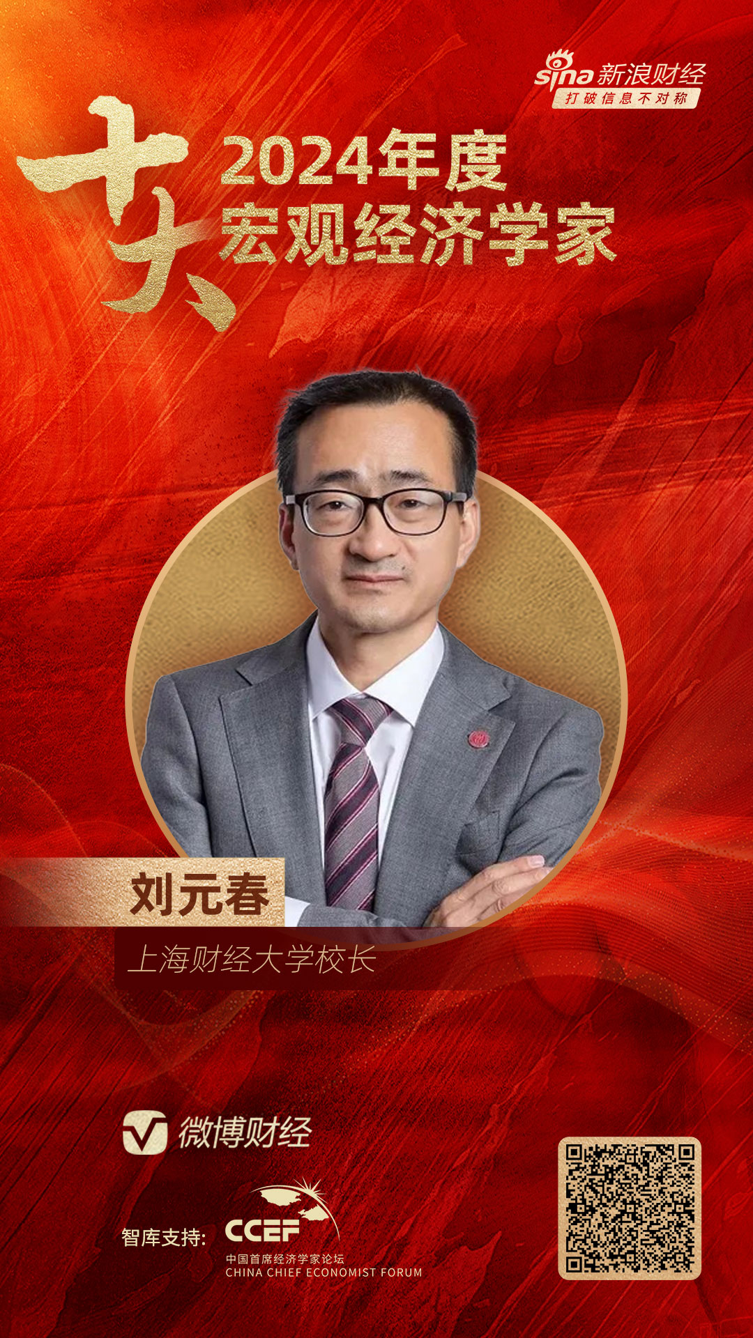 上海财经大学校长刘元春荣膺“2024年度十大影响力经济学家”!