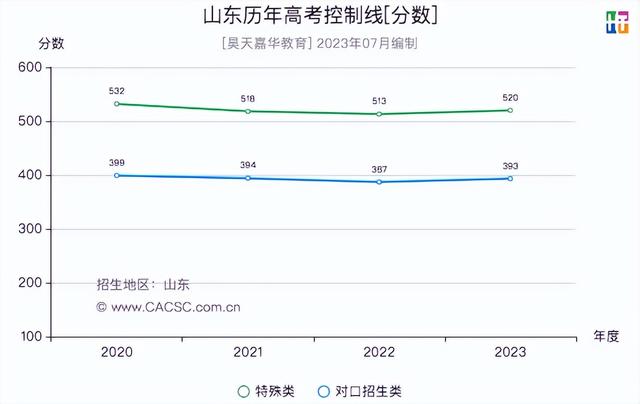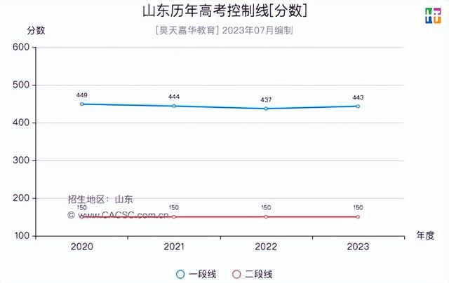 2020-2023年山东高考控制线分数