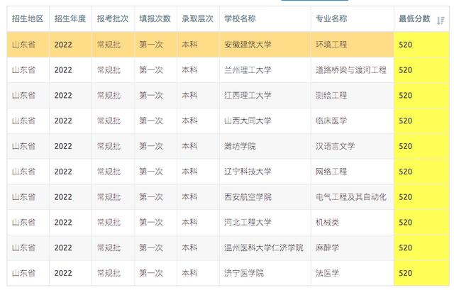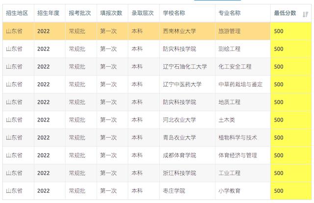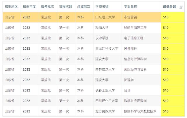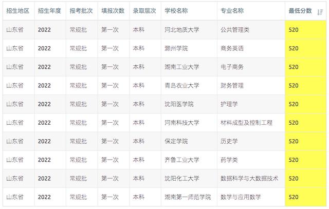 【高考志愿填报】2023年山东高考500-520分可报考的高校