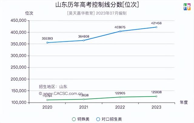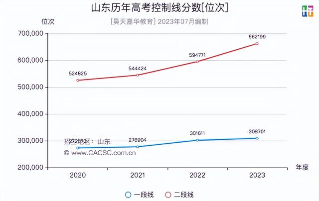 2020-2023年山东高考控制线分数位次