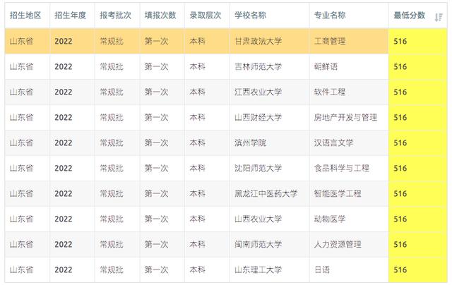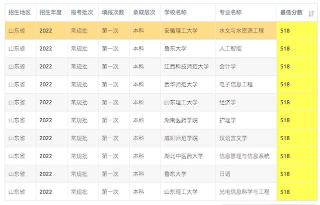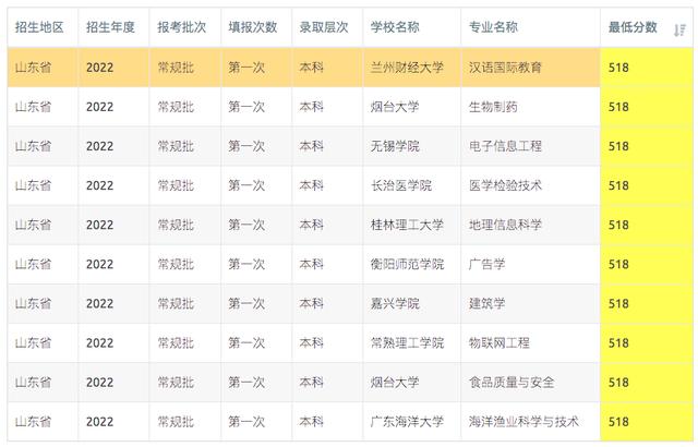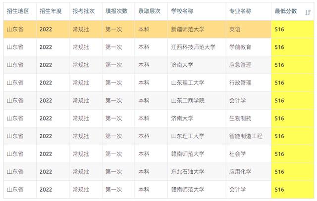 山东2023年516-518分可报考高校