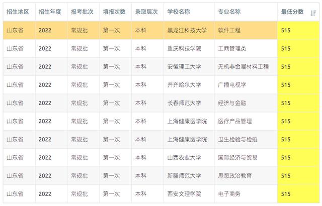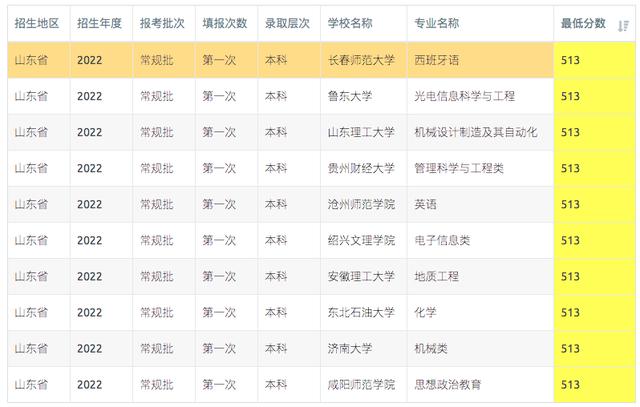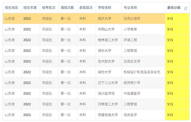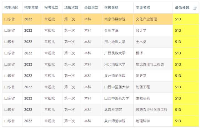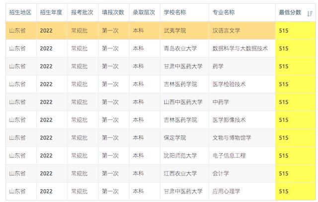 山东2023年513-515分可报考高校