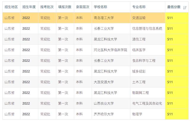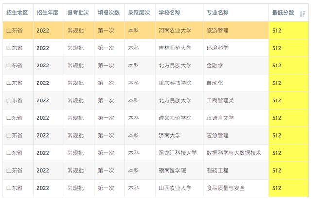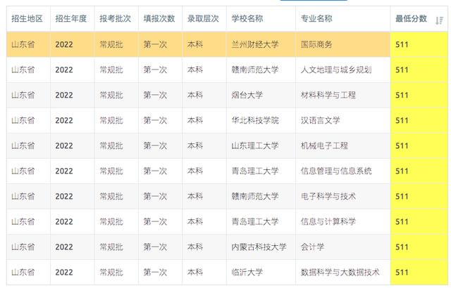 山东2023年510-512分可报考高校