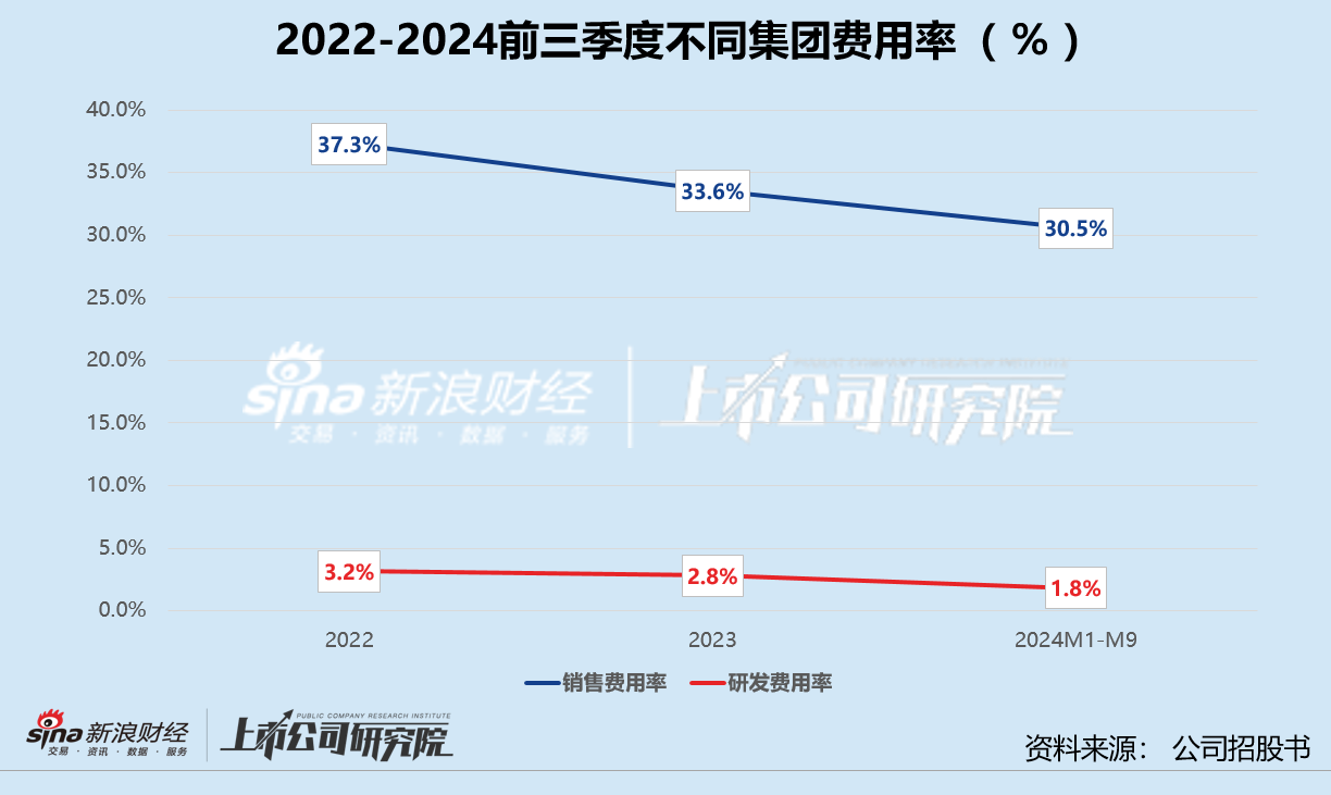 而这种轻资产模式难以避免两大隐患。其一,供应商高度集中。2022-2024年前三季度,不同集团来自五大供应商的采购额占比分别为52.0%、44.6%、43.8%,最大供应商采购额占比一度接近20%。一旦供应链中断,无疑将对终端销售产生重大影响。其二,生产成本无法靠规模效应降低。报告期内,公司的外包商品成本从1.71亿元提高至3.22亿元,占销售总成本的比例已突破70%。成本压力若无法转嫁给消费者,只能通过压缩自身利润空间缓解。