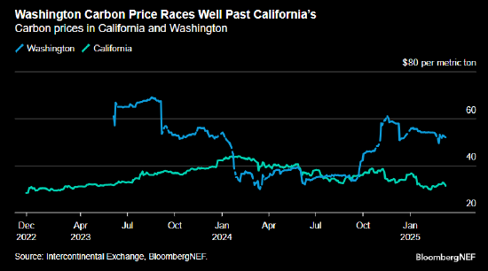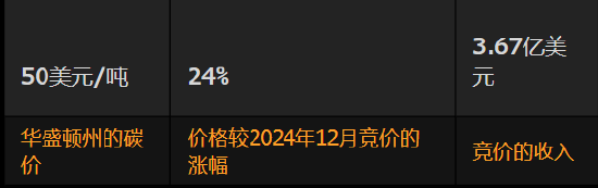 由于废除华盛顿州碳市场的投票提案在11月被否决,以及竞价购买限制有所放松,华盛顿州碳市场最新季度竞价中的结算价比前一轮高出24%。这一结果巩固了华盛顿作为美国碳价最高州的地位。