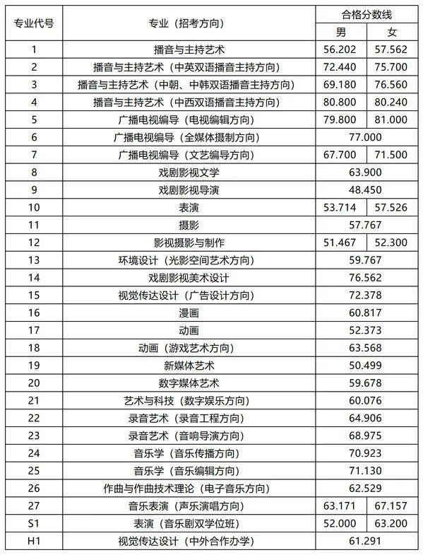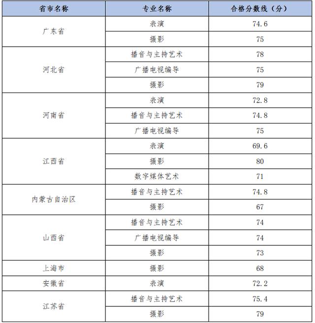 我校2023年艺术类专业招生考试工作已经结束,经学校研究,艺术类专业招生学校考试合格线如下: