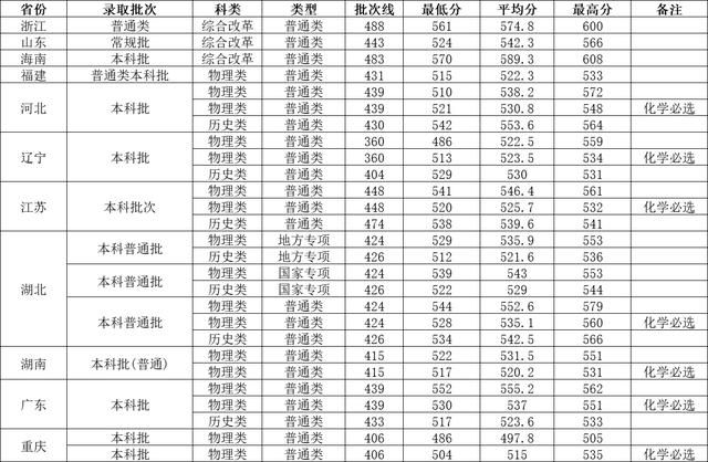 在浙江本科批录取最低分561分,最高分600分。在海南本科批录取最低分570分,最高分608分。