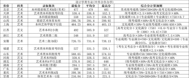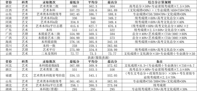 1、艺术、设计(含绘画)、表演(服装表演)录取分数线