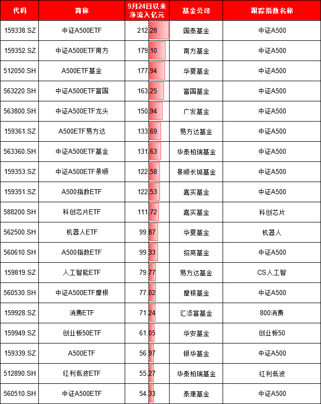 单只ETF净流入:A500ETF霸榜前9名,华夏科创50ETF净流出249亿