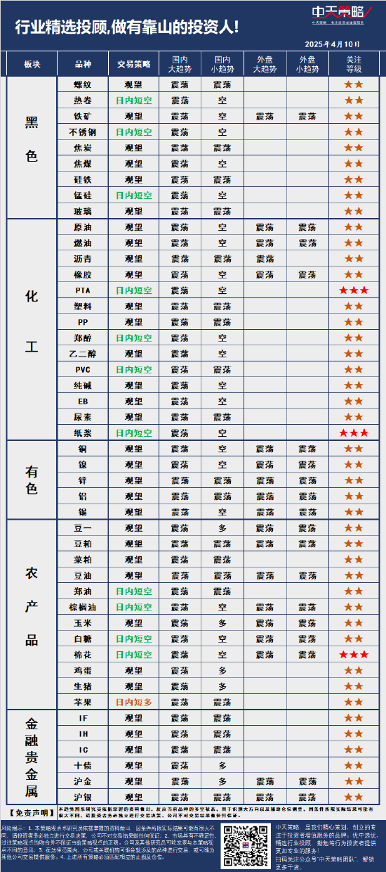 中天策略:4月10日市场分析