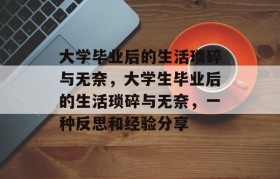 在这个快节奏的时代,越来越多的年轻人选择步入大学校园,开始他们的学术之旅,在大学毕业之后,这些年轻人...