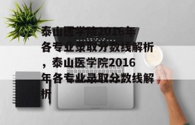 泰山医学院2016年各专业录取分数线解析:该年录取分数线因专业、省份、文理科等因素而异。医学类专业的...