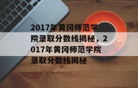2017年黄冈师范学院录取分数线揭秘,该学院各专业录取分数线因地区、科类、批次等因素而异。文史类专业...