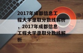 2017年成都信息工程大学录取分数线解析:该年度成都信息工程大学录取分数线因专业、省份、批次等因素而...