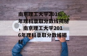 南京理工大学2016年理科录取分数线揭秘:该校当年理科录取分数线较高,具体分数线因省份、科目及招生计...