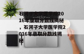 石河子大学医学院2016年录取分数线揭秘,具体分数线因省份、专业和批次不同而有所差异。该学院录取分数...