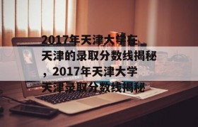 2017年天津大学在天津的录取分数线揭秘,该年度天津大学录取标准严格,各专业录取分数线普遍较高。具体...