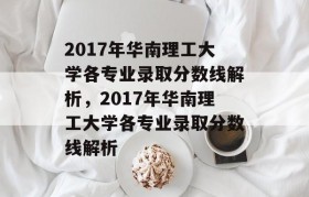 2017年华南理工大学各专业录取分数线解析,涵盖了不同学科门类。具体录取分数线因专业、省份、文理科等...