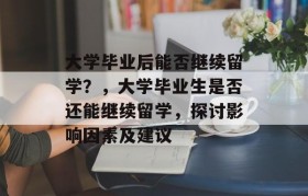 毕业后是可以申请出国留学,出国留学是指学生完成学校的学习后,申请前往其他国家接受教育的过程,毕业后申...