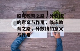 临床教育之路中,分数线是衡量医学学生学业水平的重要标准,具有重要意义与作用。它不仅决定了学生是否能够...