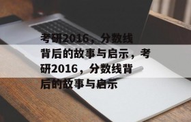 考研2016,分数线背后的故事与启示:考研分数线是衡量考生能否进入心仪学校的重要标准,背后蕴含着考生...