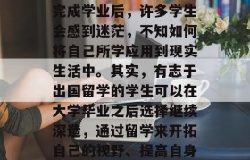 大学毕业后的毕业是每个学生都梦寐以求的时刻,当学业结束并顺利完成学业后,许多学生会感到迷茫,不知如何将自己所学应用到现实生活中。其实,有志于出国留学的学生可以在大学毕业之后选择继续深造,通过留学来开拓自己的视野、提高自身能力。,毕业生为何会选择留学?为什么选择深造