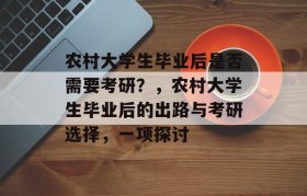 农村大学毕业生是否需要考研,这是一个值得深思的问题,随着教育制度的改革和农村教育资源的不断丰富,越来...