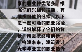 建筑大学毕业后可以从事的职业种类繁多,根据你的兴趣和技能,有很多可能的选择。以下是一些可能的职业路径,详细解释了它们的背景、所需技能和前景。,构建未来,建筑设计大学毕业生的职业选择与前景分析