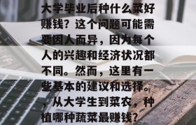 大学毕业后种什么菜好赚钱?这个问题可能需要因人而异,因为每个人的兴趣和经济状况都不同。然而,这里有一些基本的建议和选择。,从大学生到菜农,种植哪种蔬菜最赚钱?
