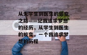 从大学生到医生的转变之路——记我追求梦想的经历,从学生到医生的蜕变,一个我追求梦想的历程