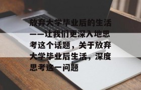 放弃大学毕业后的生活——让我们更深入地思考这个话题,关于放弃大学毕业后生活,深度思考这一问题