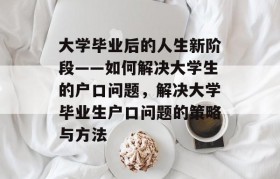 大学毕业后的人生新阶段——如何解决大学生的户口问题,解决大学毕业生户口问题的策略与方法