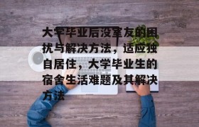 大学毕业后没室友的困扰与解决方法,适应独自居住,大学毕业生的宿舍生活难题及其解决方法
