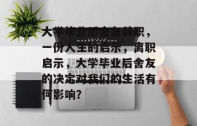 大学毕业后舍友辞职,一份人生的启示,离职启示,大学毕业后舍友的决定对我们的生活有何影响?