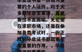 毕业证书是一份极为重要的个人证件,对于大多数毕业生来说,其重要性不言而喻。无论是在求职市场,还是在参加各类考试时,一份正规的毕业证书都起着至关重要的作用。,毕业证书的重要性
