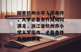 随着社会的快速发展和教育改革的不断深化,许多家长对孩子的教育越来越重视,申请就读杭州市内优质的小学已...