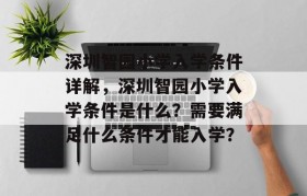 深圳智园小学入学条件详解,深圳智园小学入学条件是什么?需要满足什么条件才能入学?