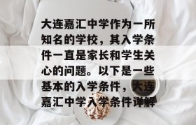 申请人需要具有高中毕业证书或同等学历,这是进入大连嘉汇中学的基本要求,这包括高考分数或其他相关的评估...