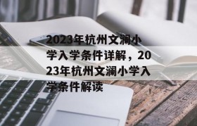 2023年杭州文澜小学入学条件详解,2023年杭州文澜小学入学条件解读
