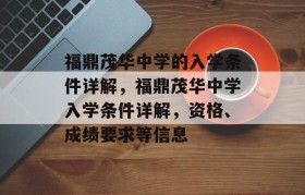 福鼎茂华中学,位于我国福建省福鼎市,是一所备受关注的高品质学府,对于想要进入该校就读的学生来说,有哪...