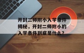 开封二师附小入学条件揭秘,开封二师附小的入学条件到底是什么?