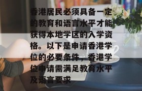 香港居民必须具备一定的教育和语言水平才能获得本地学区的入学资格。以下是申请香港学位的必要条件,香港学位申请需满足教育水平及语言要求