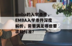 《论EMBA入学条件》\n\n在中国高等教育的大潮中,EMBA(Executive Master o...